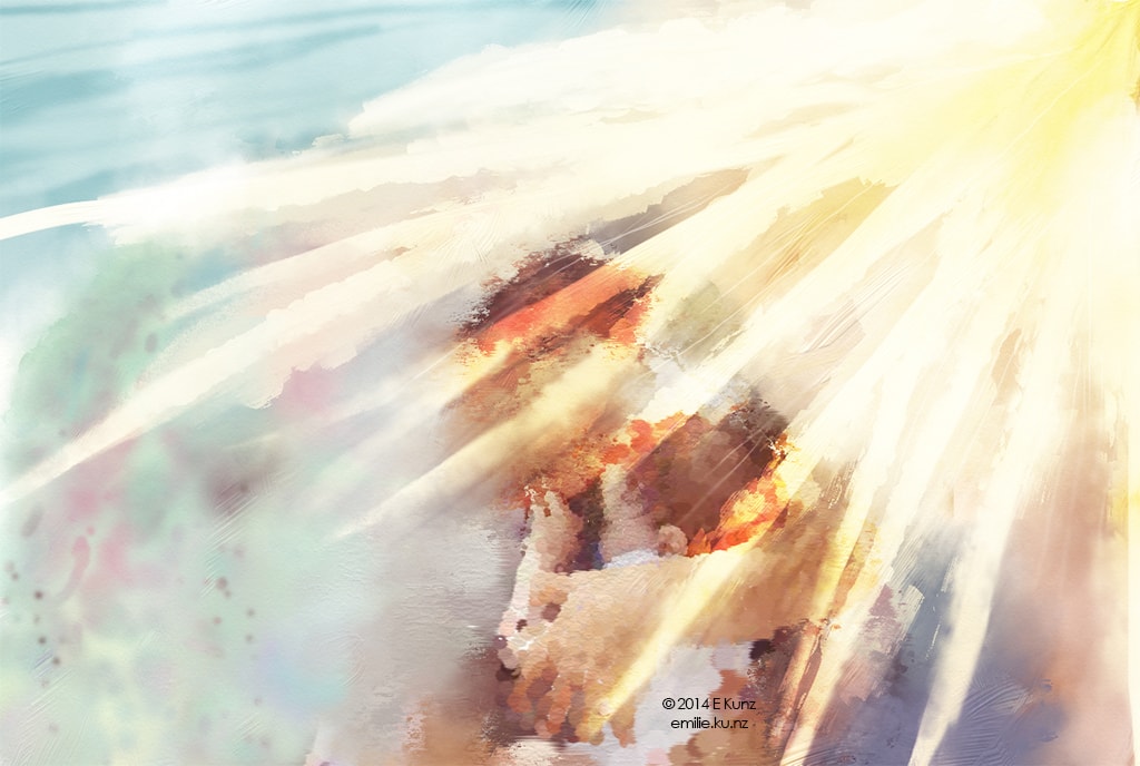 All the best,Gentle soft colors and rays of light embrace the baby as much as the parent who must carry their child into the light.