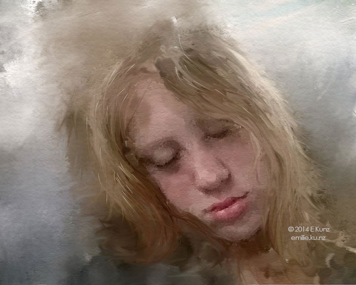 Usually, if it's just an abstract or a landscape painting, I do not plan with pencil and paper. I start my paintings on a blank canvas in my favorite program ArtRage going freehand with the mouse or my bamboo tablet. I paint in layers, so I'm able to make more pinpoint adjustments and bring in custom tools or papers to help me achieve the look I want.