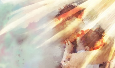 Gentle soft colors and rays of light embrace the baby as much as the parent who must carry their child into the light.